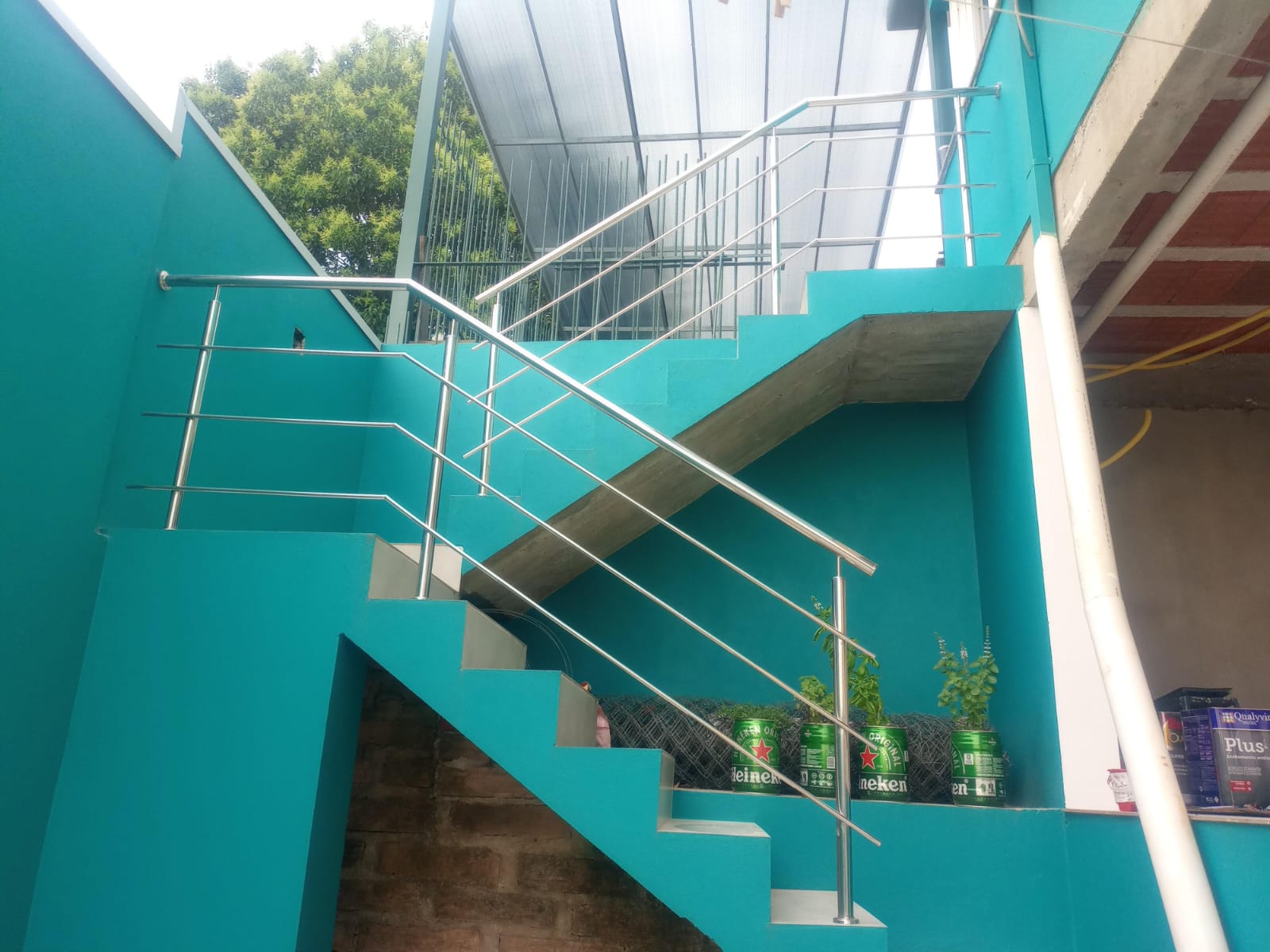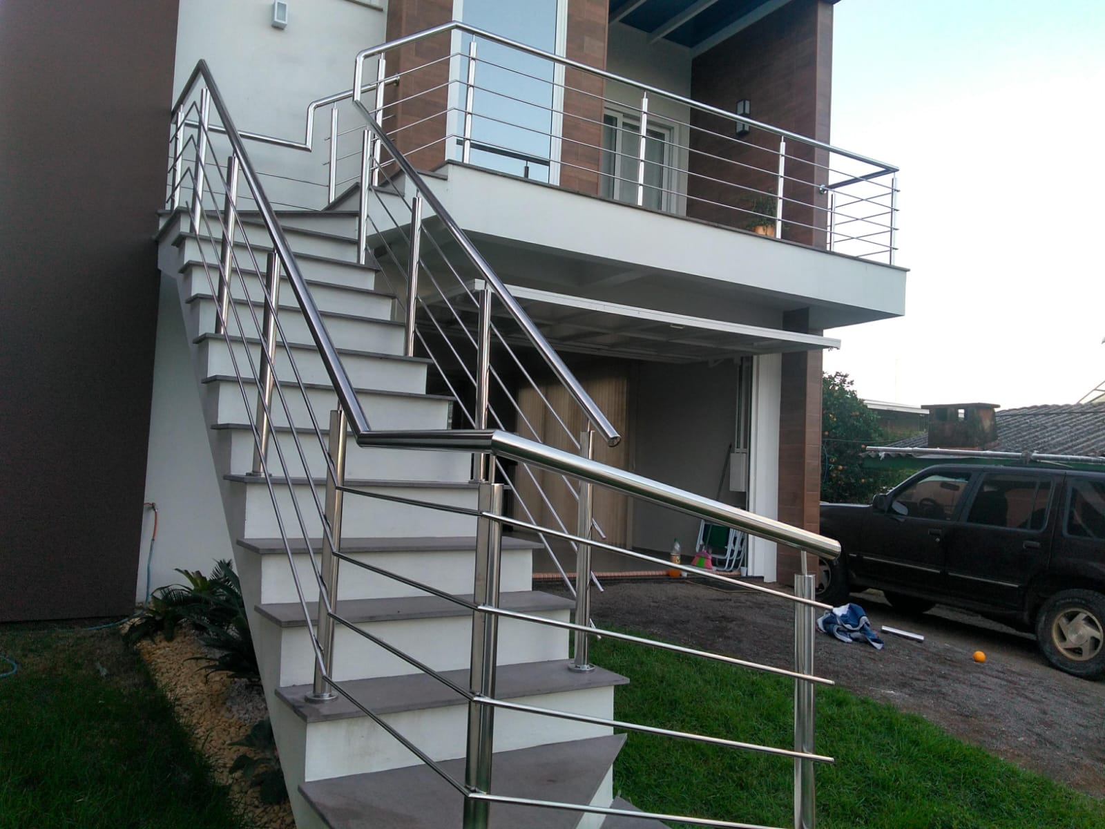Guarda corpo em inox para sacada .torre (pinça)de inox para fixação do vidro .