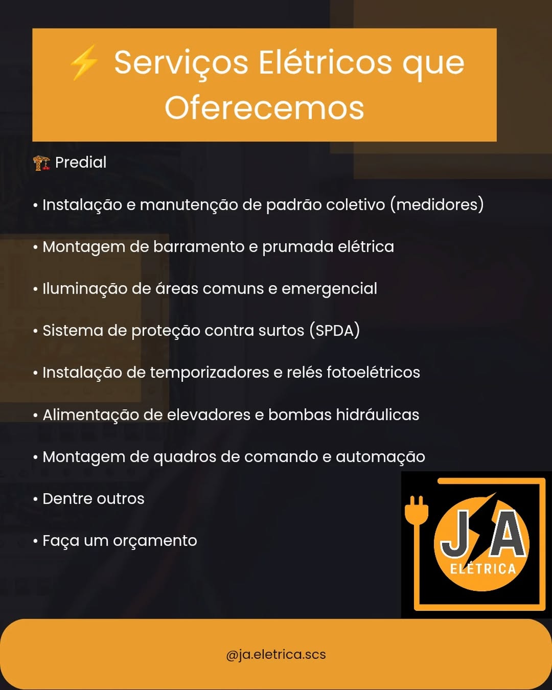 ⚡ JA Elétrica | Instalações e Manutenções🏠 Residencial, Comercial e Predial