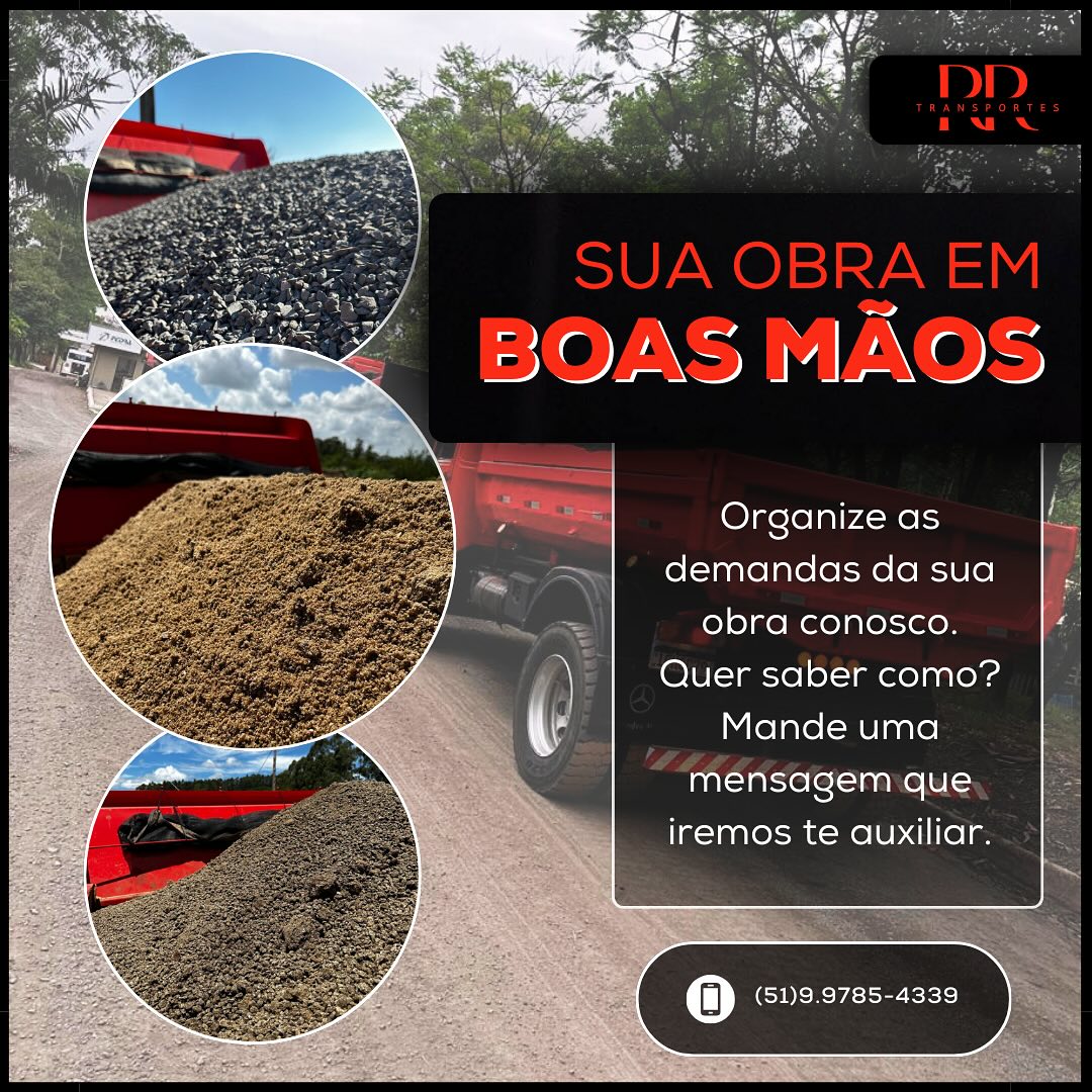 Sua melhor opção em transportes e Vendas de… Areião Areia média Areia fina Brita Saibro Aterro Quais quer tipo de frete relacionado a caçamba… Venda de materiais pra todo Vale dos Sinos Apenas frete com a caçamba com qualquer material pra caçamba, todo RS e SC também. Tenho ANTT pra transportes